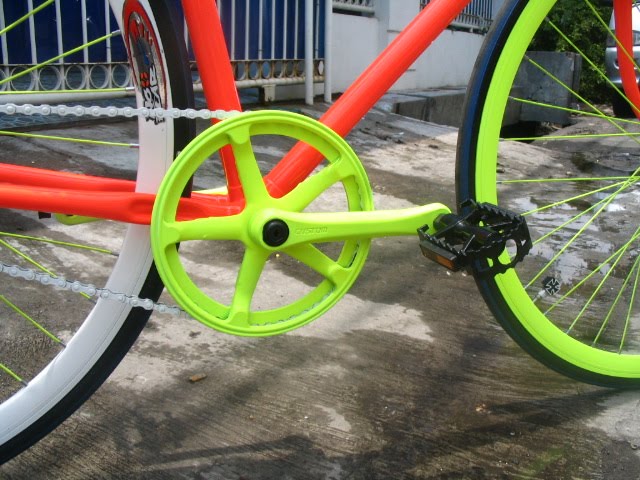 Ini Bro sepeda fixie baru jadi yang mau dijual, harga murah di banding ente ngerakit dari awal. Soal rasa tiada duanya manis dan ngejreng, kayak nano-nano rame rasanya. di bawa jalan di jamin orang-orang pada melirik sepeda ini.